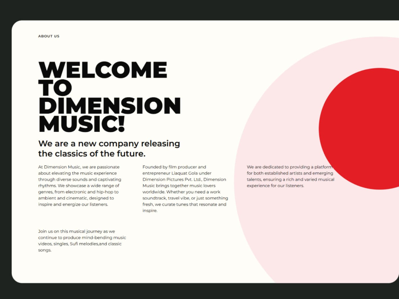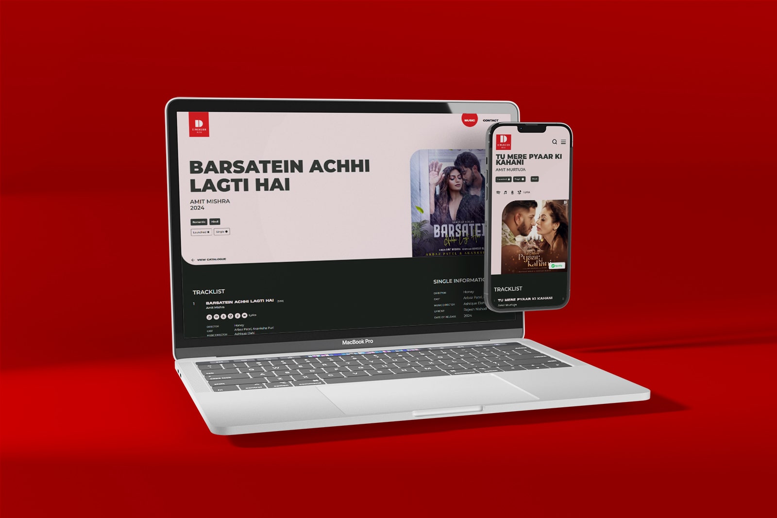 The primary objective for the Dimension Music website was to design a compelling digital stage for their music catalog, built to engage modern listeners. The goal was to move beyond a simple online archive and create an active discovery engine. This platform needed to establish Dimension Music's brand as a high-quality production house, while seamlessly funneling listeners to streaming services like Spotify and Apple Music to directly drive plays and grow their audience.