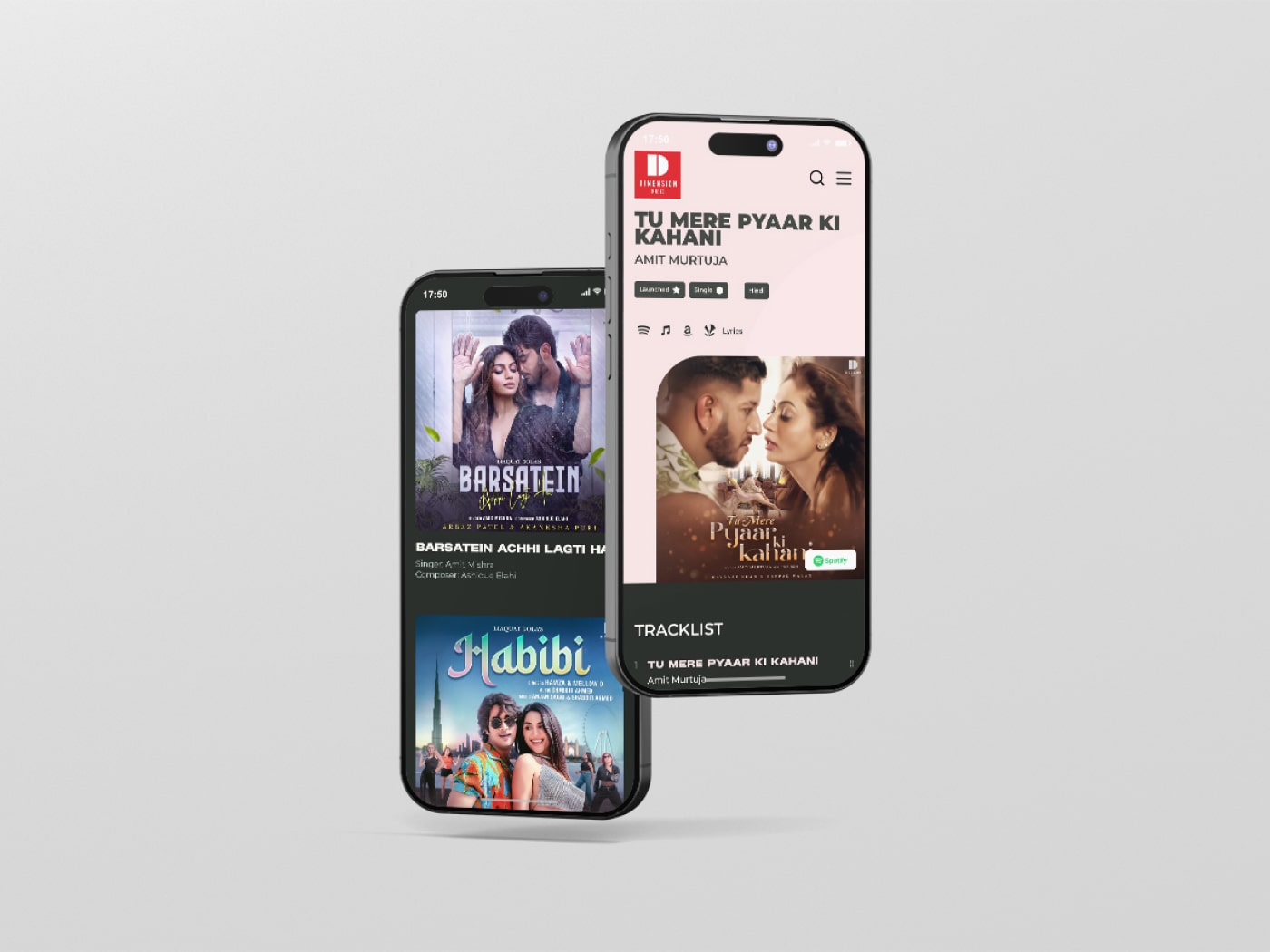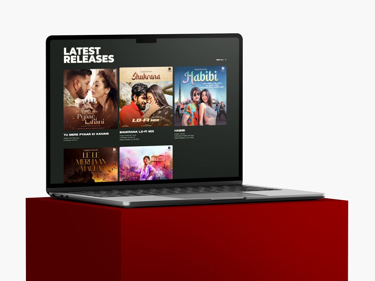 Dimension Music is a music production house that needed a digital platform to showcase its catalog. The goal was to create a sleek, modern website that would serve as a central hub for listeners to discover new tracks and easily access them on their favorite streaming platforms like Spotify, Apple Music, and Wynk Music. As part of a larger agency team, my role was to design the key UI components (music cards) that would form the core of this project.